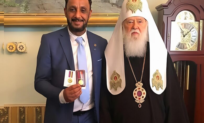 تقديرًا لجهوده البارزة في تعزيز التفاهم الديني والتعايش السلمي، منح قداسة البطريرك فيلاريت دينيسنكو، بطريرك الكنيسة الأوكرانية الأرثوذكسية، الدكتور صالح محمد ظاهر وسام “التضحية والحب لأوكرانيا” خلال مراسم رسمية في كاتدرائية القديس فولوديمير بالعاصمة كييف.