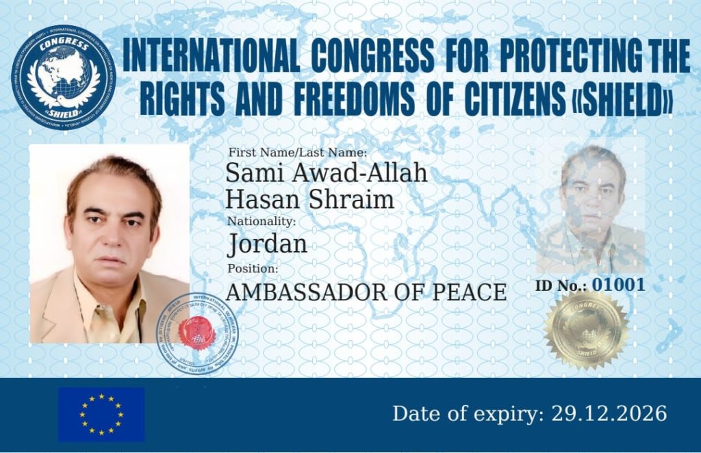 منظمة الدرع تمنح سامي عوض الله شريم سفيرا للسلام والبطاقة الدبلوماسية الدولية