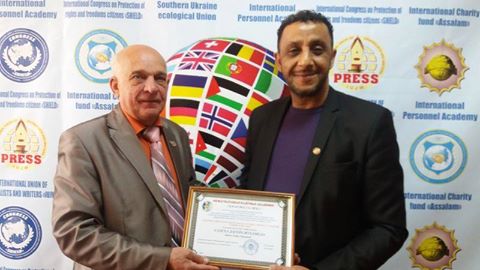 رئيس المجلس العام في مدينة اوديسا يكرم صالح ظاهر بشهادة تقدير