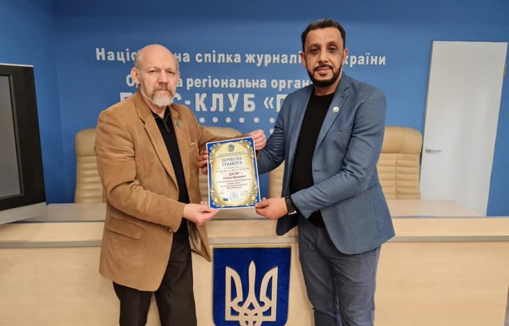 صالح ظاهر يستلم شهادة تقدير في يوم الصحافة الاوكرانية